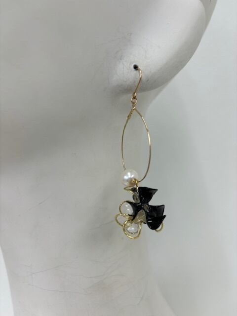 揺れる★波動ピアス!GOLD×BLACK!