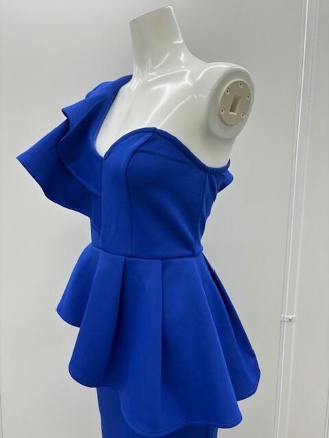 華やかBLUE★ワンショルダー!フリル!ストレッチ!ワンピース!