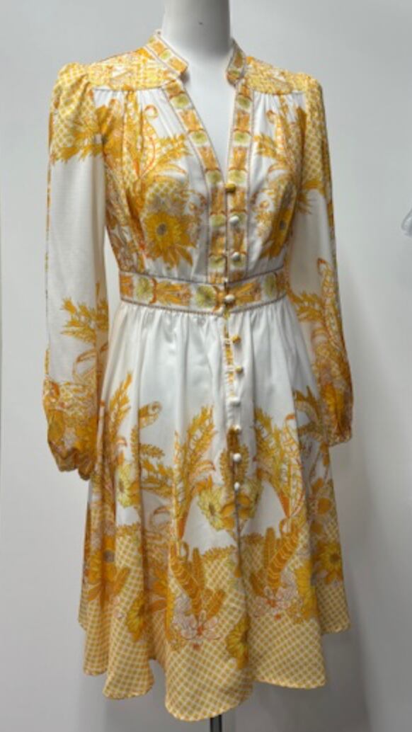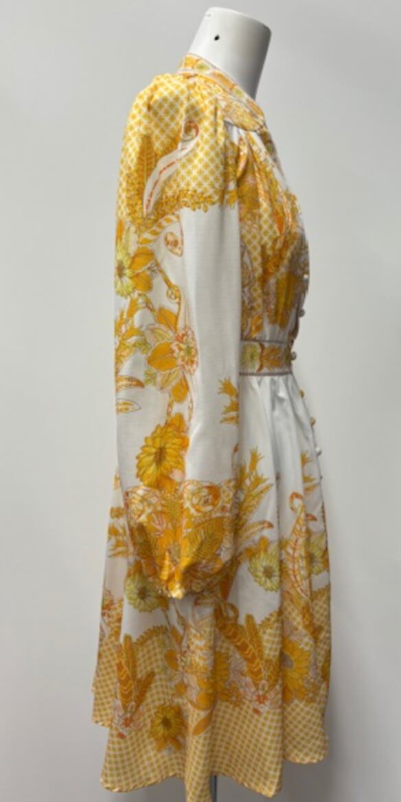 可愛らしいイエロープリント!ワンピ!ふんわり袖!