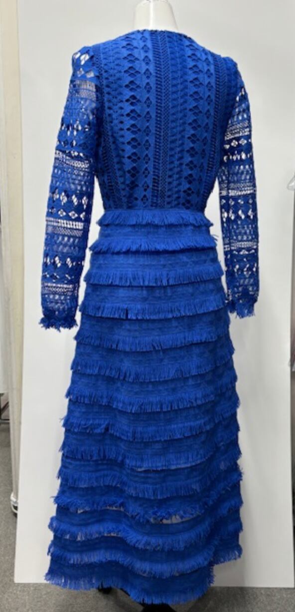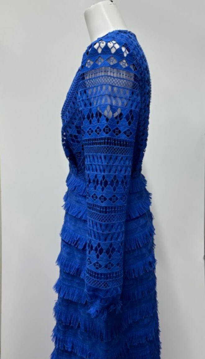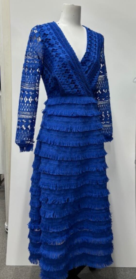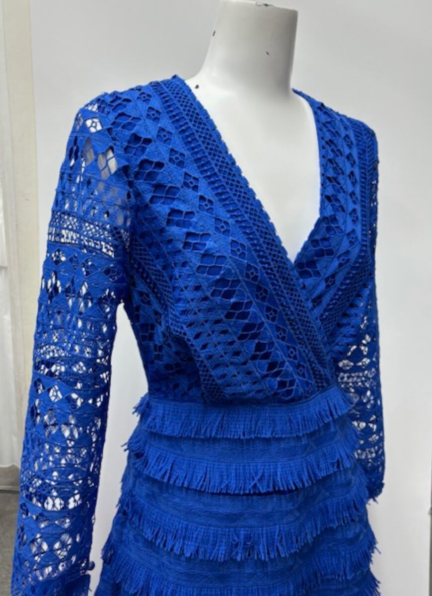 鮮やかブルー!Vネック!レース×フリンジ!ワンピ!