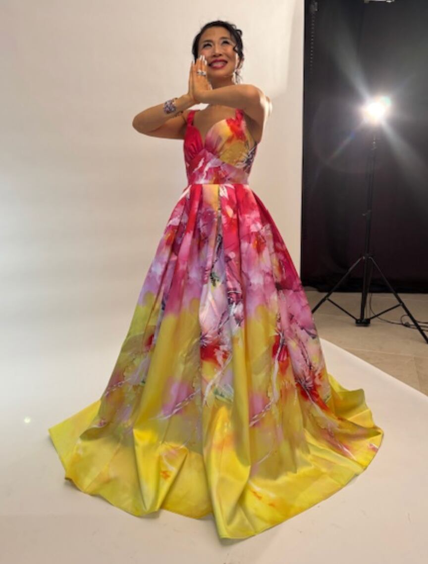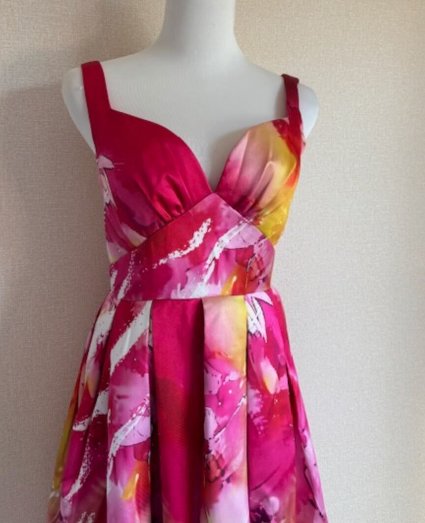 撮影時着用ドレス★PINK×YELLOWドレス!大きなフラワープリント!