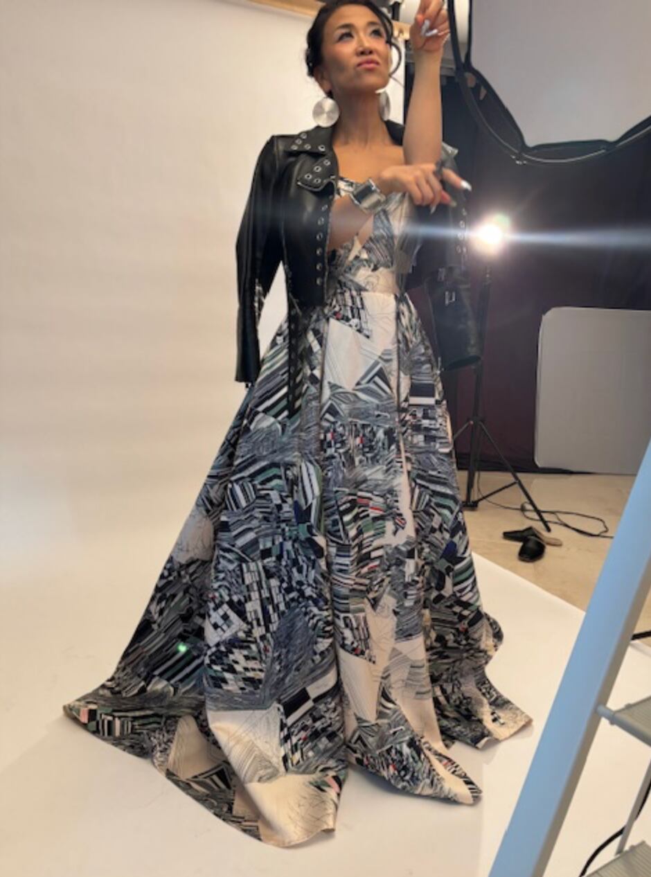 ドレスには珍しいスタイリッシュなグラフィカルプリント!