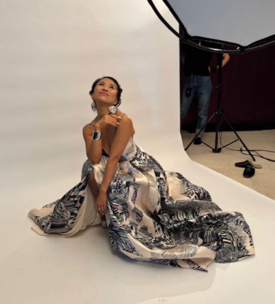 撮影時着用ドレス★スタイリッシュドレス!前スリット!胸元透け感!蝶リング&ヘッドドレス付き!