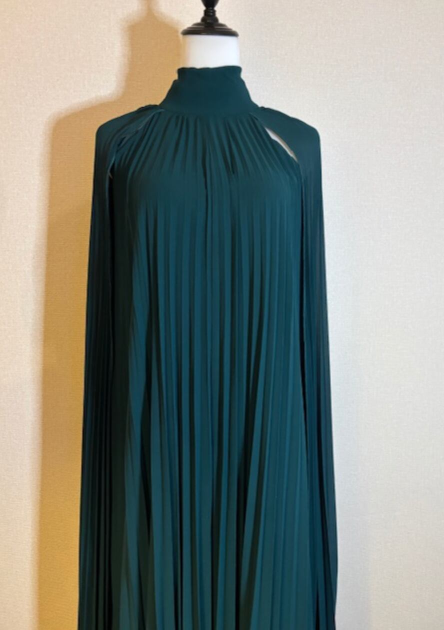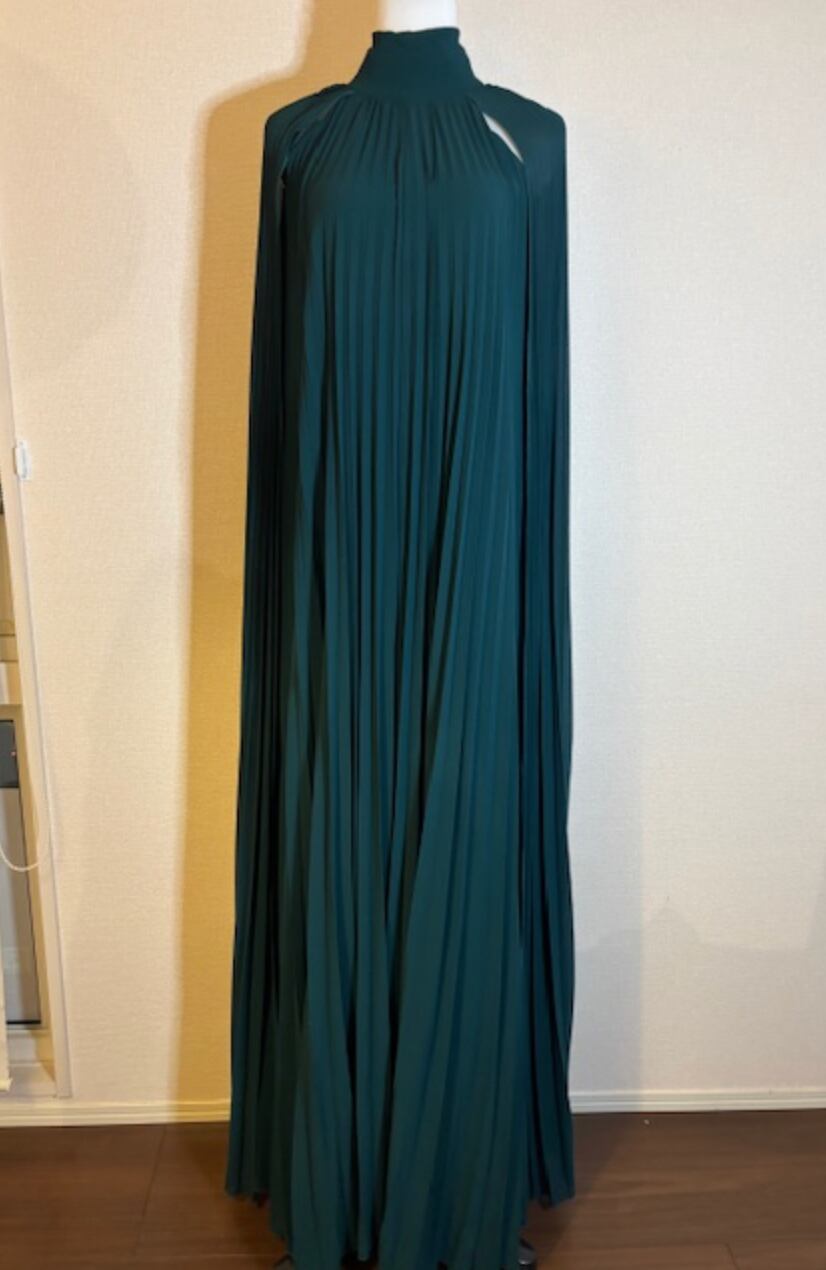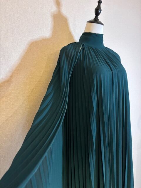 Greenプリーツ★ロングドレス!ケープタイプ!