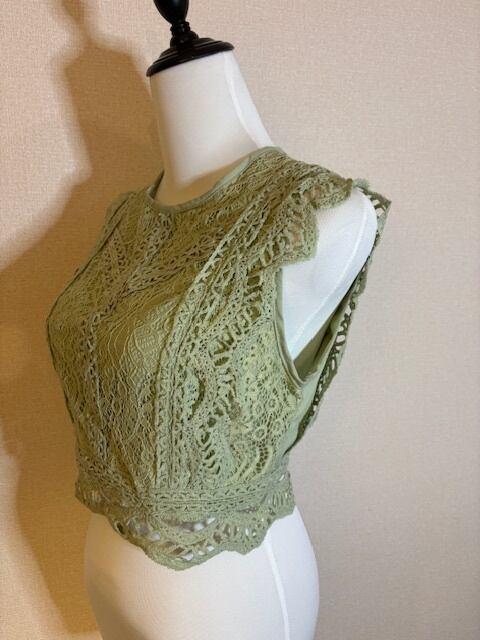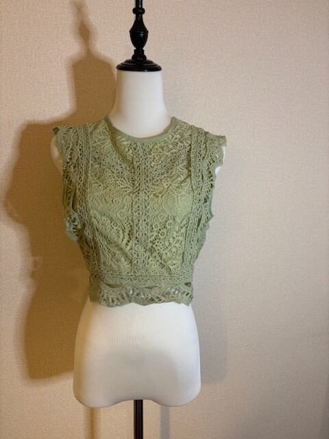 くすみミントグリーン★レーストップス!カジュアルにも!フェミニンにも!