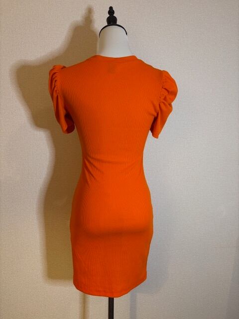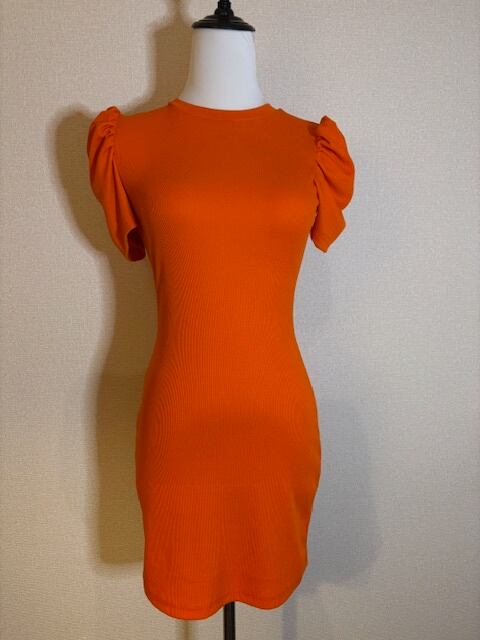 鮮やかORANGE★カットソーミニワンピ!パフスリーブ!