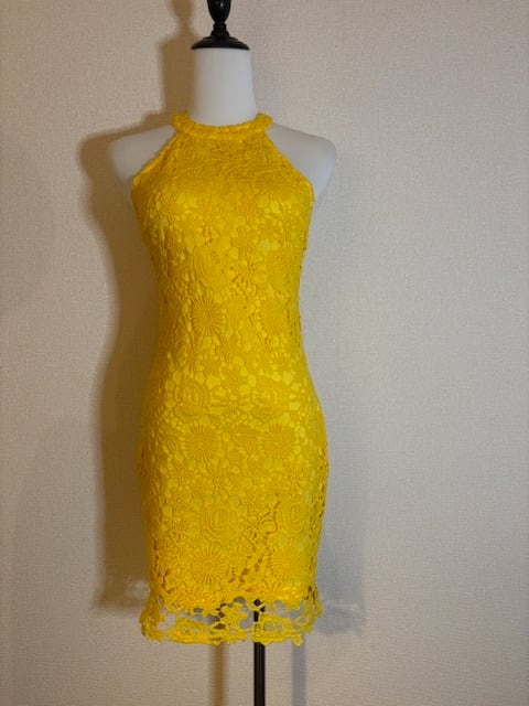 華やかレース★yellowワンピ!アメリカンスリーブ