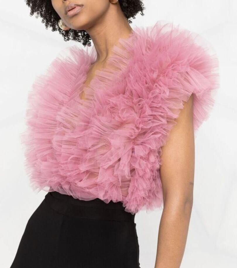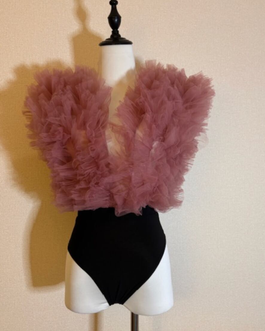 ハリのある黒のボリュームスカートに合わせてフェミニンにしたり