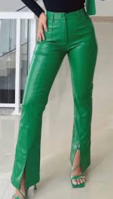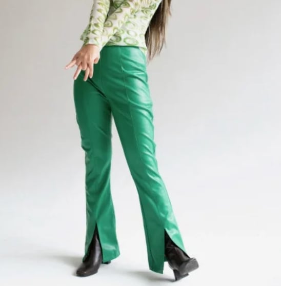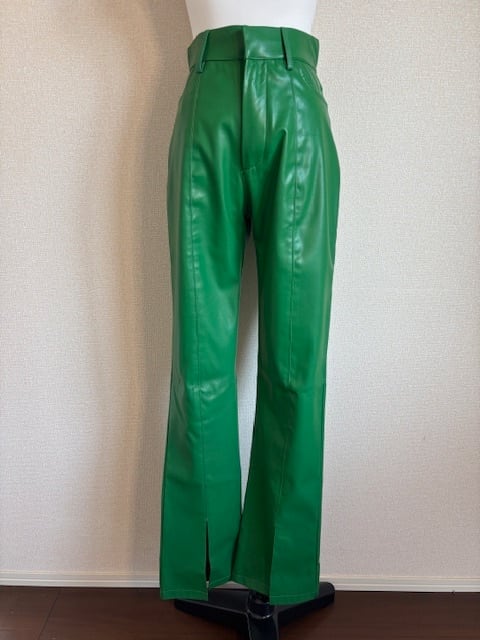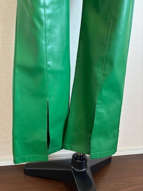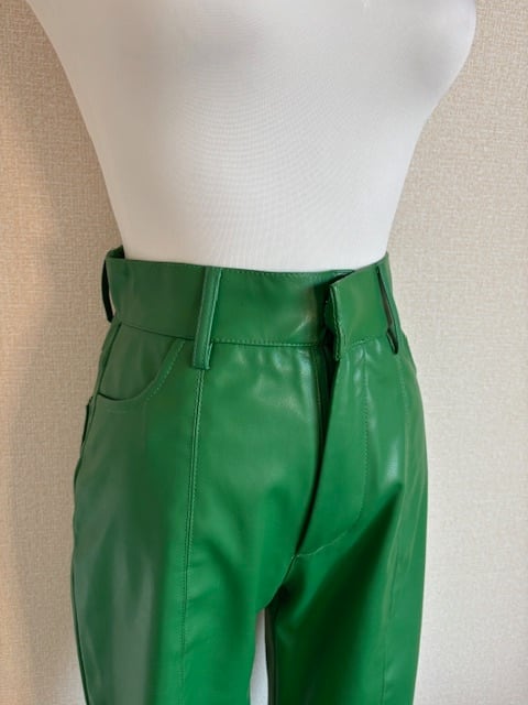 珍しい鮮やかなグリーンのエコレザーパンツです
