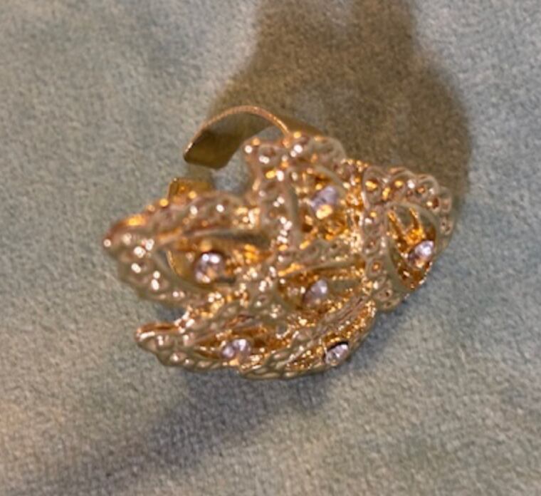 華やかでゴージャスなリーフモチーフのネックレスとバングルとリングです