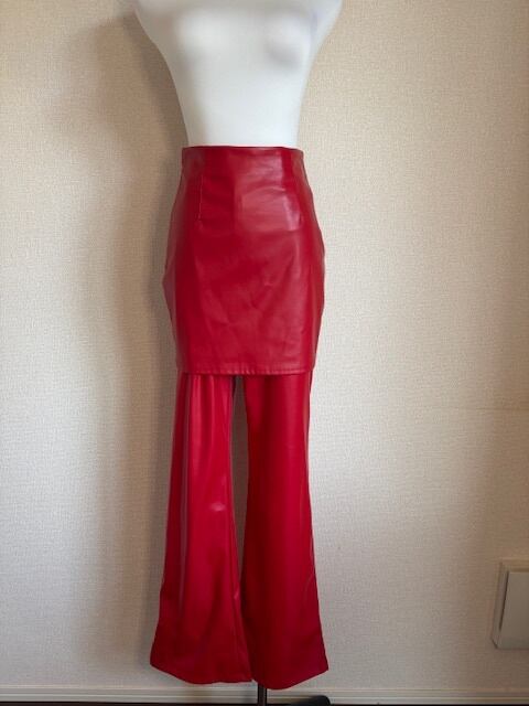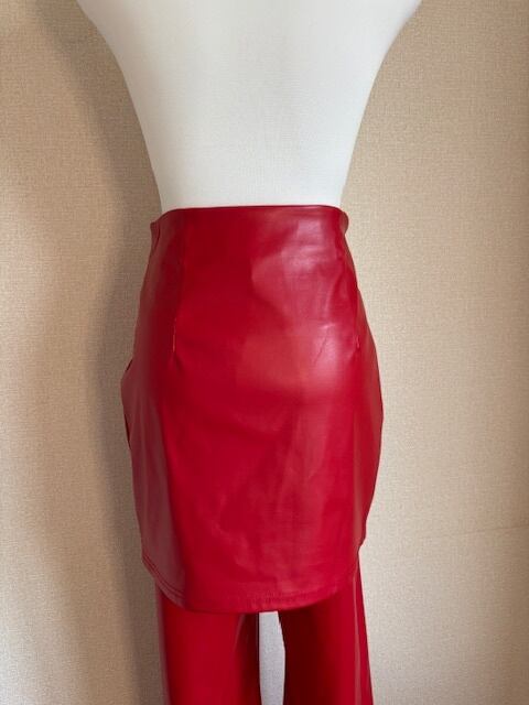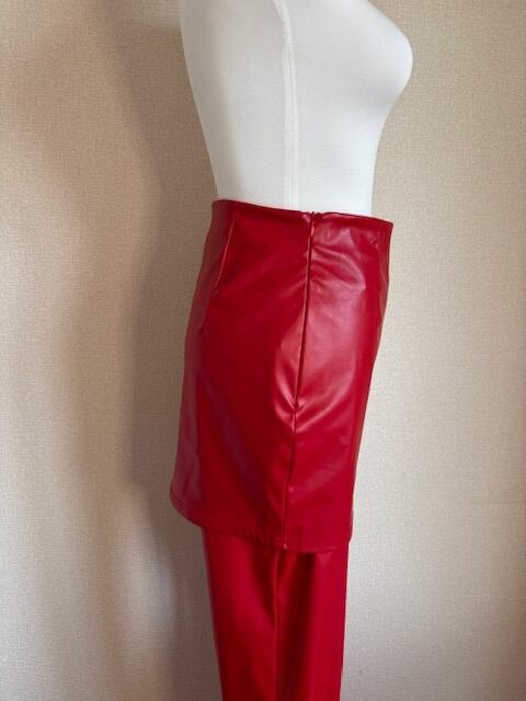 鮮やかREDパンツ&スカートセット★エコレザー!コーデのポイントに!