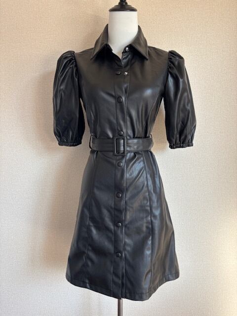 とっても珍しい華やかなエコレザーのシャツワンピです