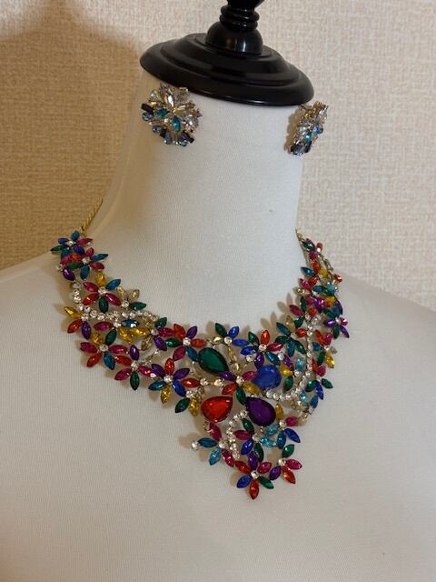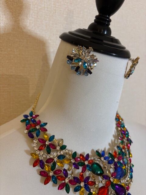 マルチカラーのとっても華やかなネックレスとピアスです