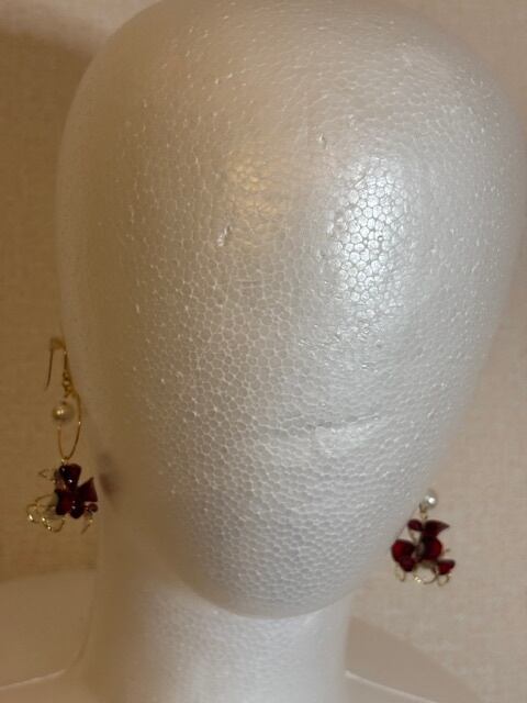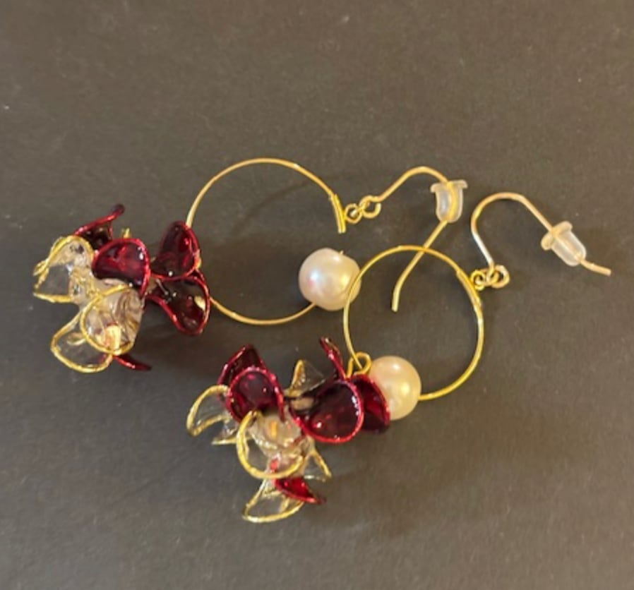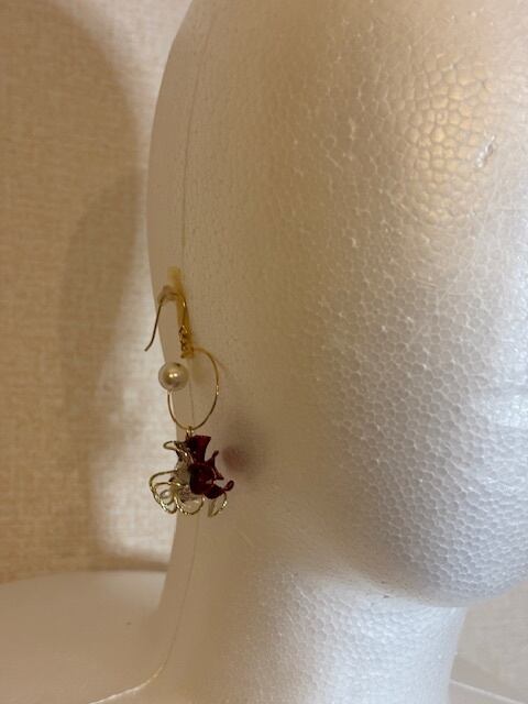 ゴールドのワイヤーの花のようなデザインのピアスです