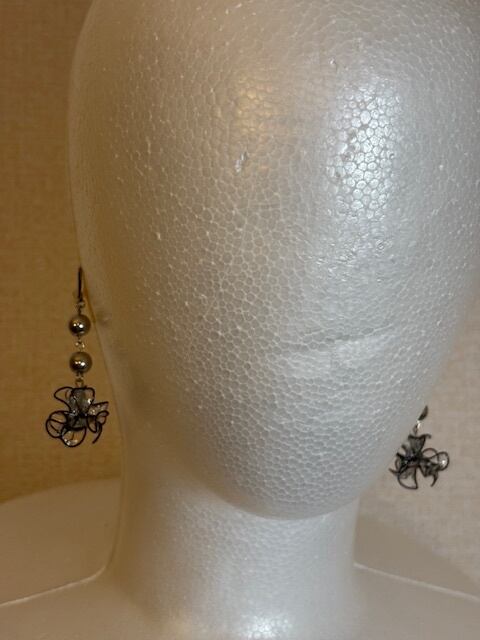 ブラックのワイヤーの花のようなデザインのピアスです