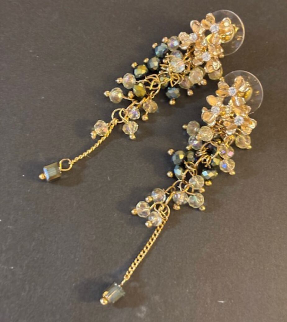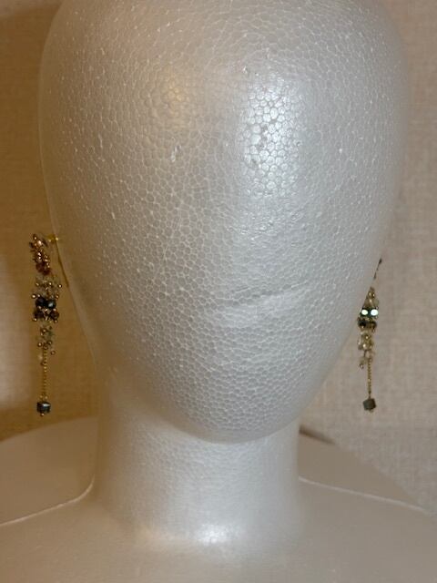ゴールドの花モチーフから下がるようなデザインのピアスです