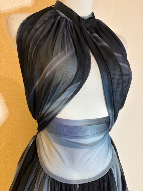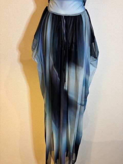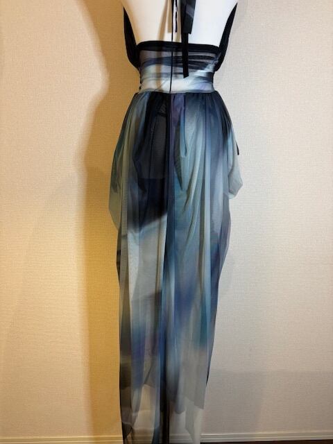 ネイビー・ブルー系★ネット素材ドレス!アレンジ可能!プリント!