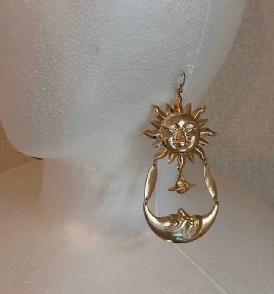太陽と月が手を繋いだようなとっても可愛い珍しいデザインのピアスです