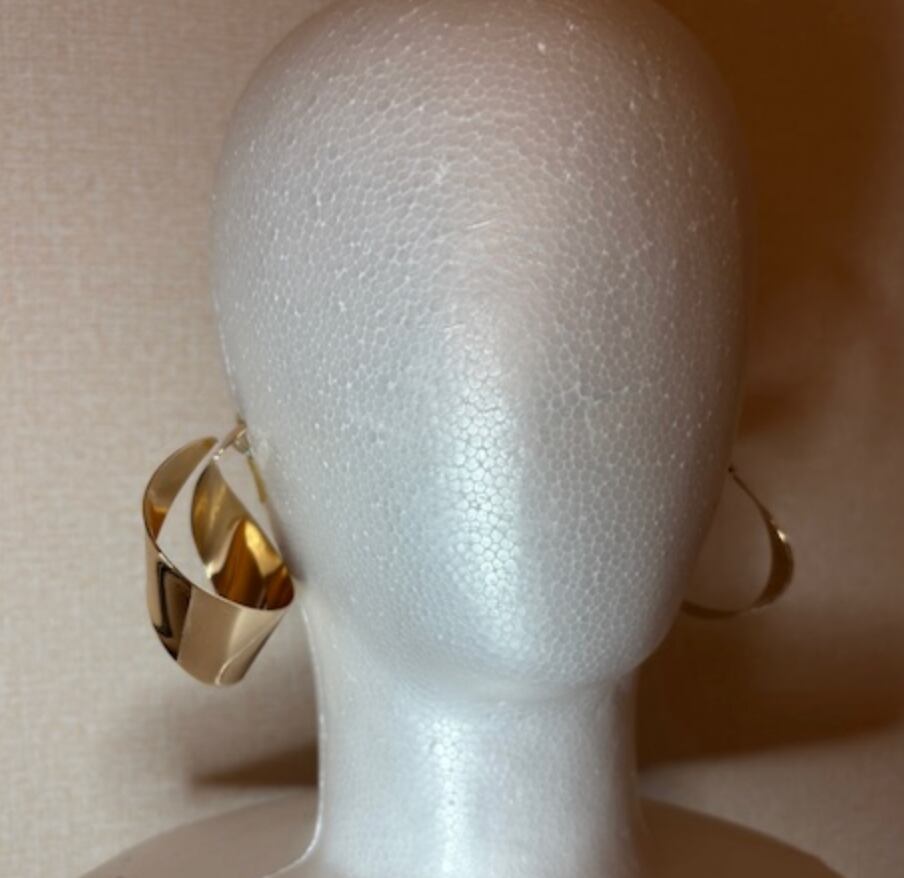 GOLDのプレートを曲げたデザインのピアスは