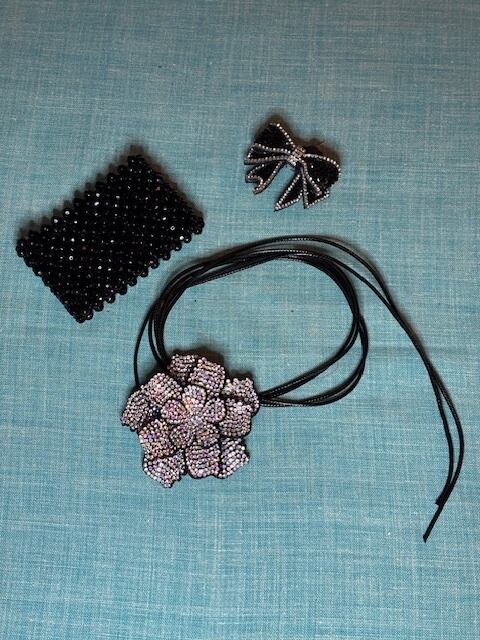 BLACK3点セット★SILVERポイント花チョーカー・ピアス!バングル!