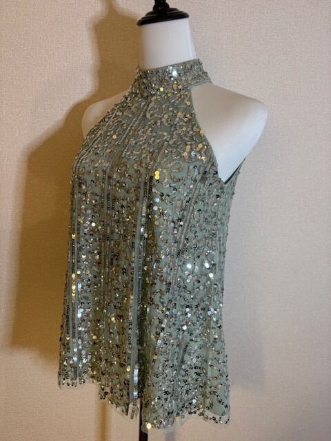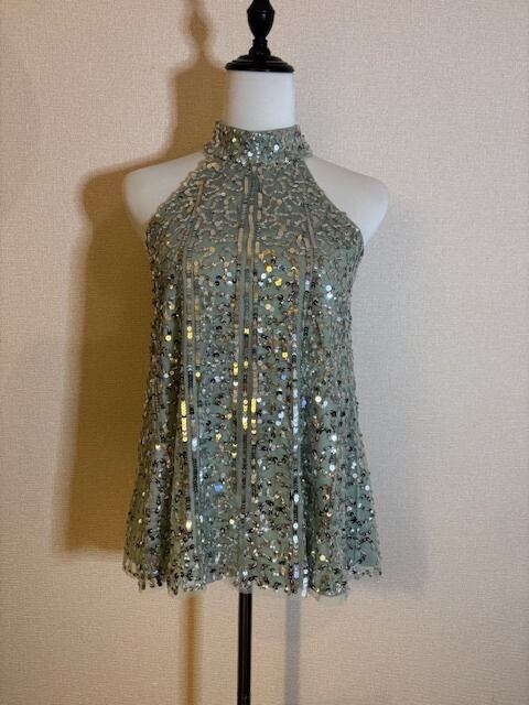 ミントグリーン×シルバースパンコール!華やかトップス!