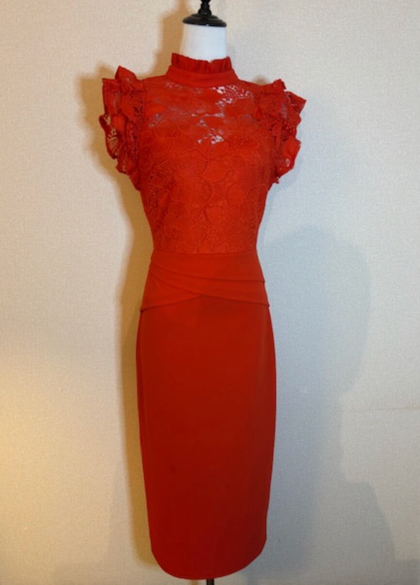 RED★レース使い華やかストレッチワンピ!