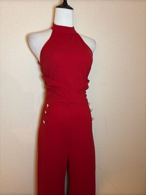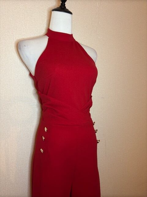 鮮やかRED★コンビネゾン!GOLDボタン付き