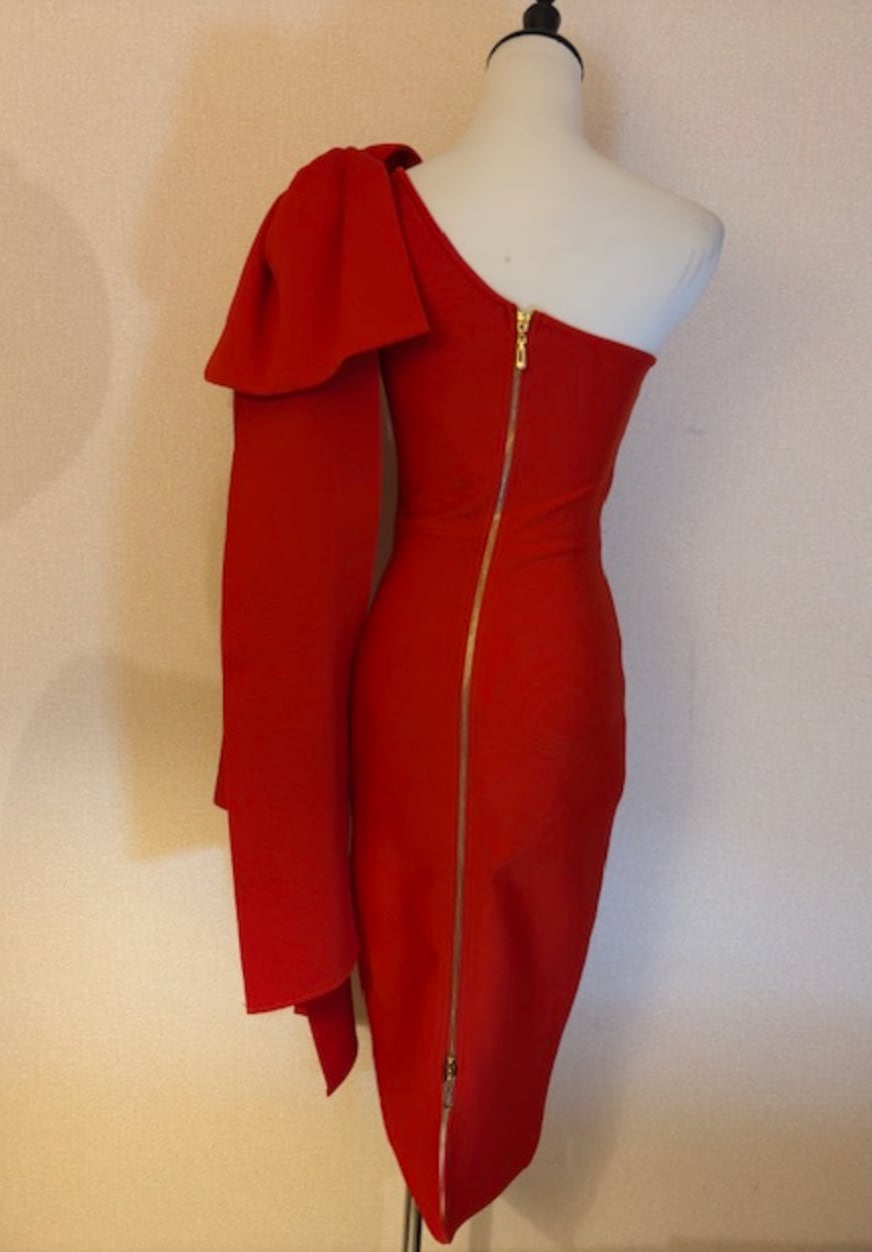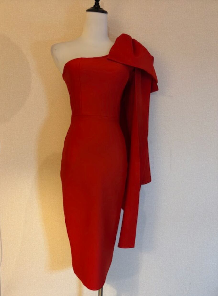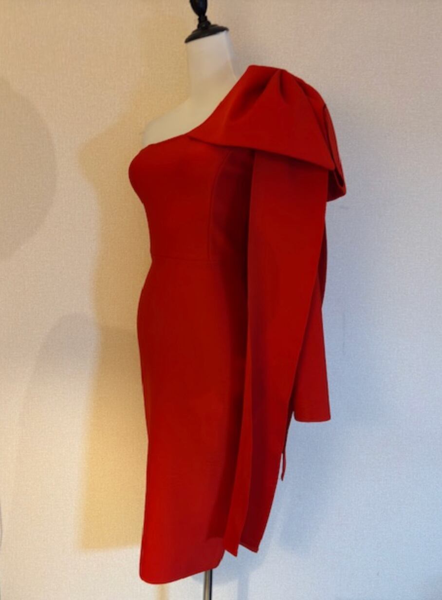 ニット素材なので着やすく、しかも女性の体を美しく見せるデザイン