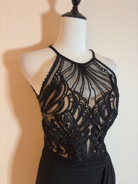 胸元のBLACKのレースがポイントのワンピです