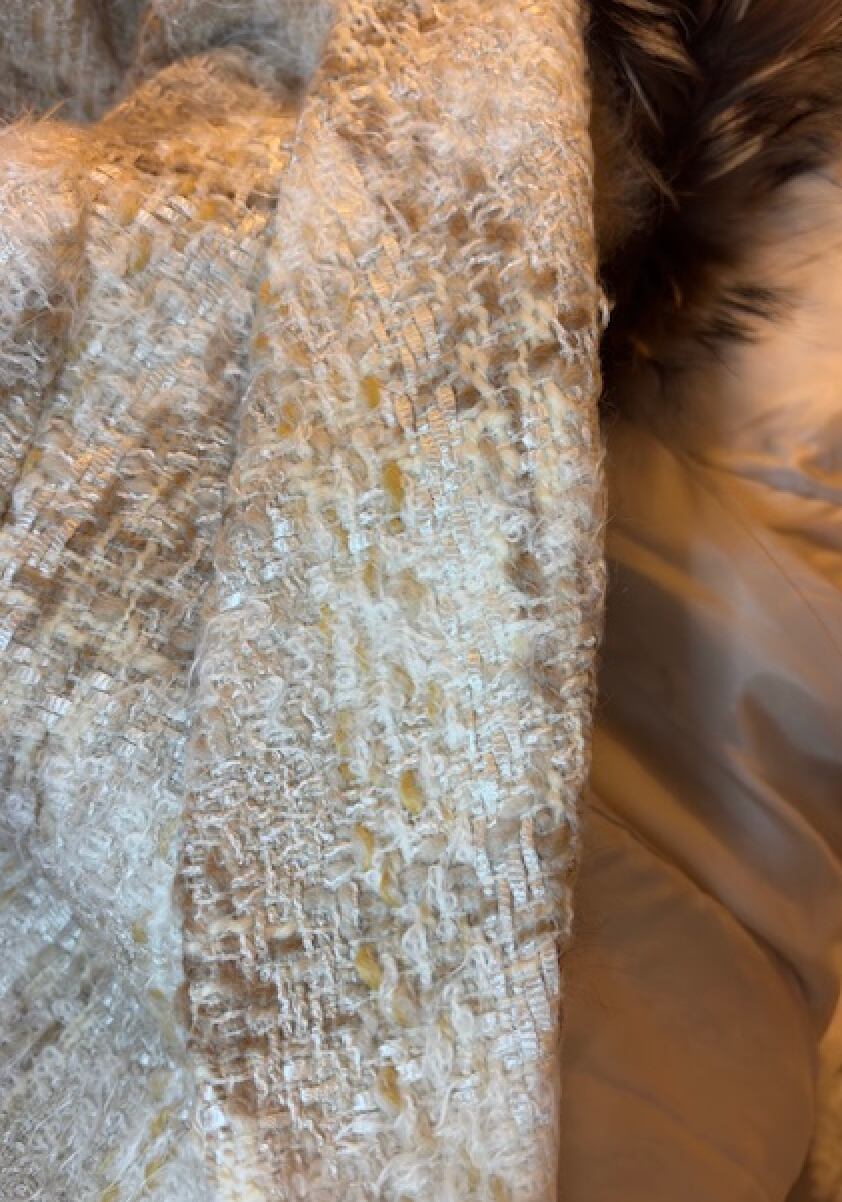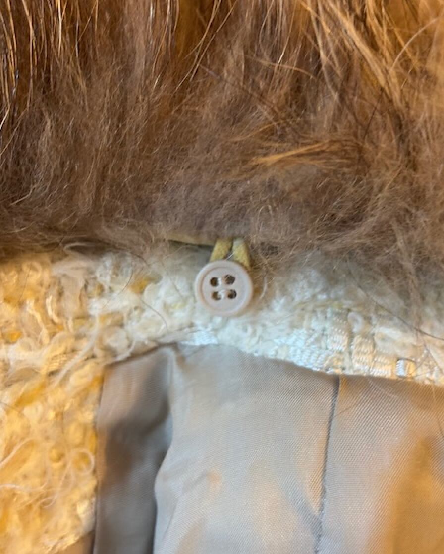 リアルファーの下にはツイード素材のラウンドカラーです