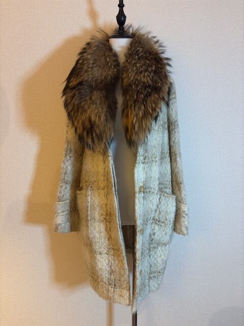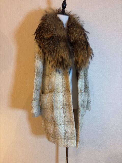 ベージュ系ツイード★リアルファーカラー付き!コート!★