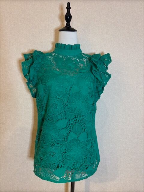 鮮やかGREEN★立体的フリル!レーストップス!