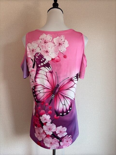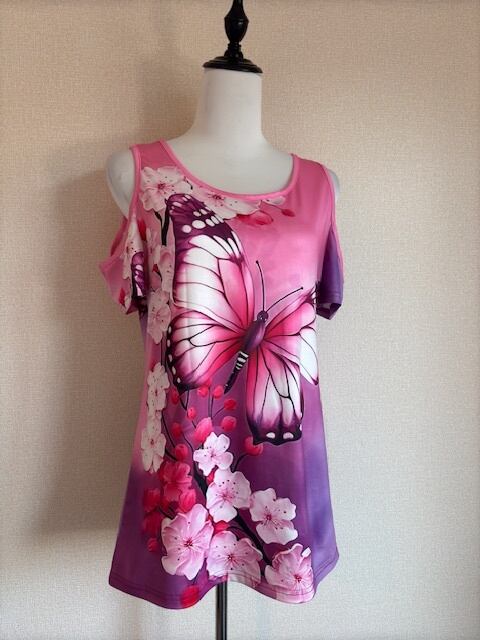 華やか★蝶&花プリント!カットソー!タウンでも!スポーツでも!