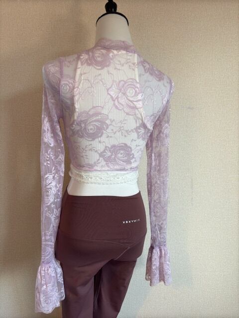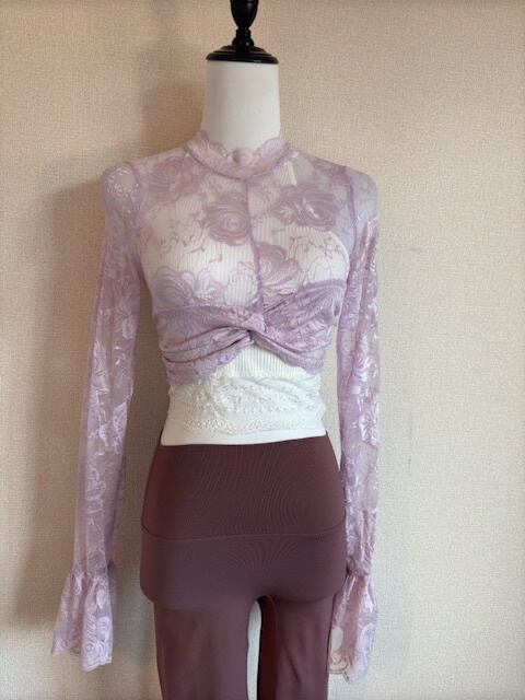 白のレースがついたトップスと ピング系ストレッチレースのトップス