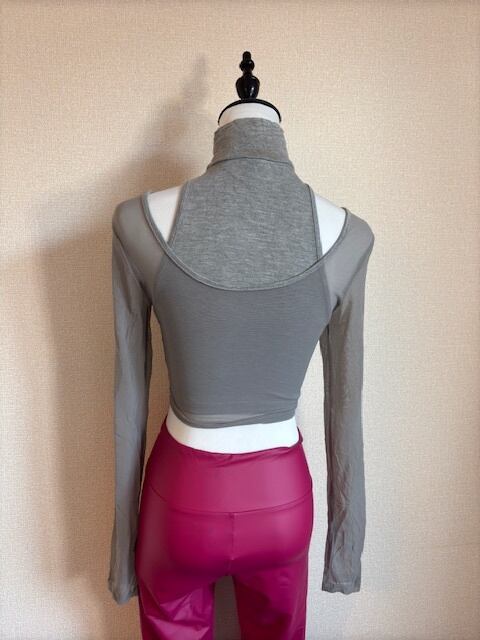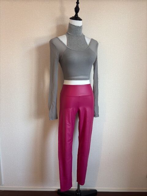 目を引く★レイヤードトップス★PINK!光沢エコレザー風レギンスパンツ!2点セット!