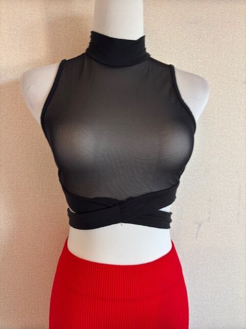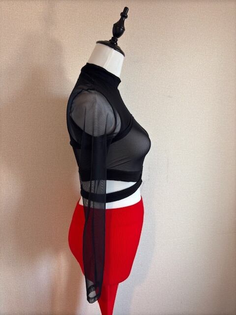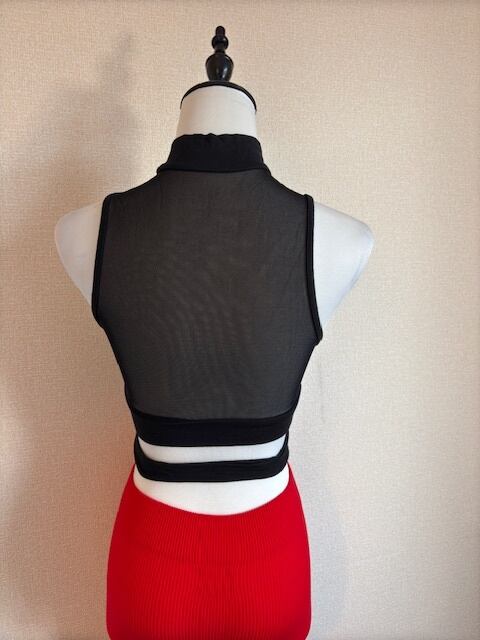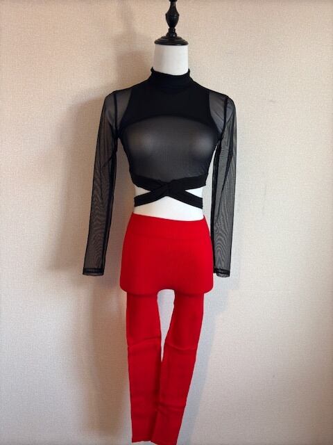 ネットレイヤードトップス★鮮やかRED!レギンスパンツ!3点セット!