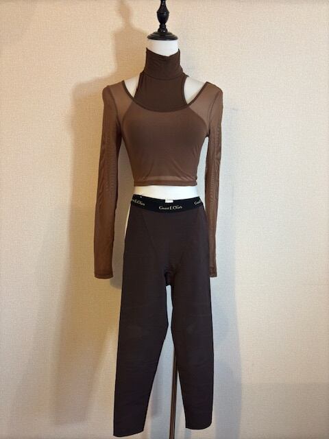 ブラウンレイヤードトップス★弥生さんの定番ブランド!着圧レギンス!2点セット!