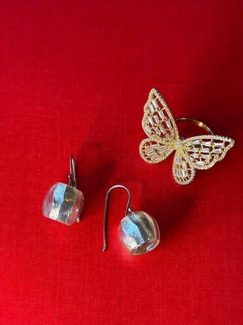 お守り★いつもそばに★SILVERピアス!GOLD蝶つきリング!