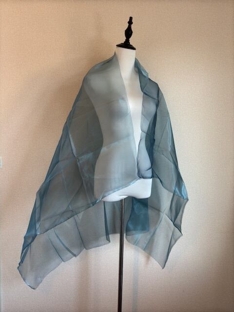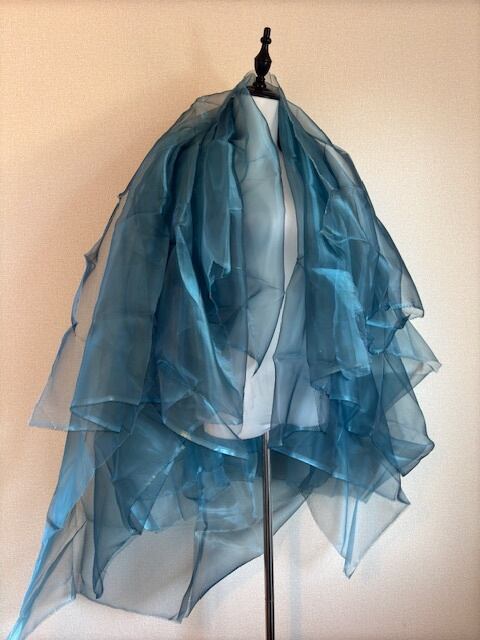 それから撮影に使った玉虫色のブルーグリーンのオーガンジー